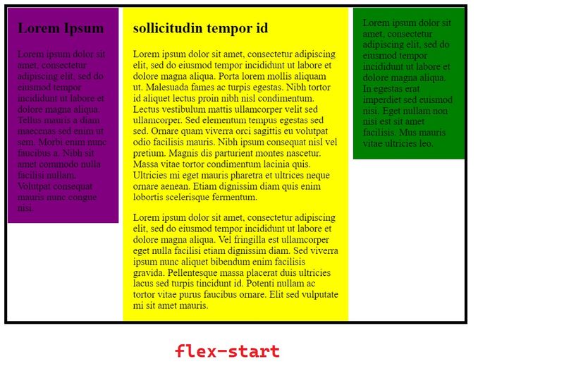 It aligns the items on the top (start) of the flex container, and the height of each item is maintained as it is.