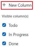 By default, there are three progress status columns when you first create the project board. They are the Todo, In progress, and Done columns.