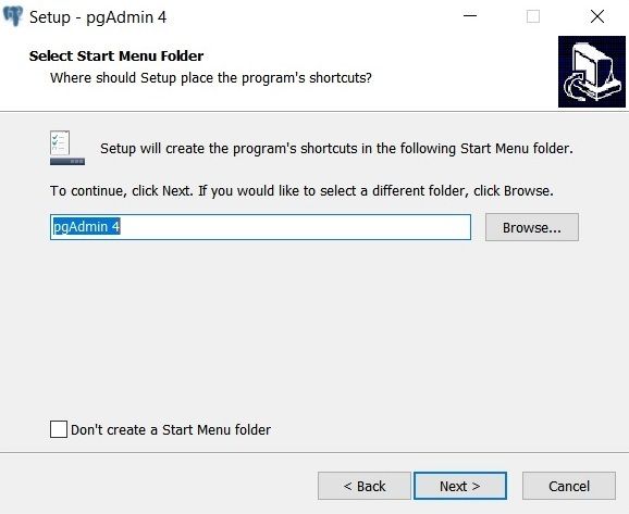 - Click next to create pgAdmin 4 shortcuts in Start Menu