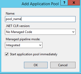 Name your application pool and set the .NET CLR version to No Managed Code.