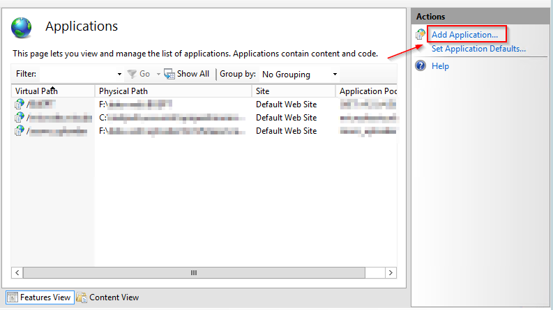 Set your alias, this will be the path on the Url. Then, set the physical path to the .NET Core build.