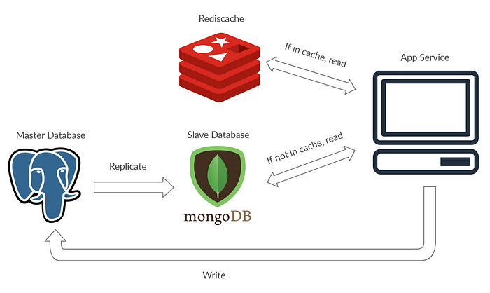 In the example diagram, I use Postgresql as my master. Postgres is a relational database. Relational databases are structured and easy to maintain. For the slave, I use MongoDB because MongoDB is a non-relational database or NoSQL. You can learn how to implement this architecture in a blog post by Greg Sabino. Though slave databases don’t have to be NoSQL, there is another example of using MySQL as both master and slave. Having one type of database for both master and slave can serve to be convenient because in the end maintaining the codebase will be a lot easier.