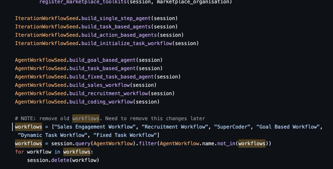 After making the changes in workflow_seed.py, navigate to main.py in the SuperAGI folder and add the created workflow’s method name.
