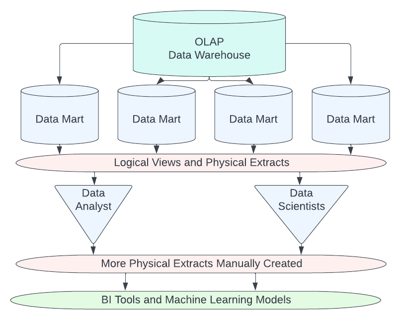 The problem comes in that you just can't give all consumers access to all the data to maintain all the security, regulatory and governance responsibilities of the enterprise.