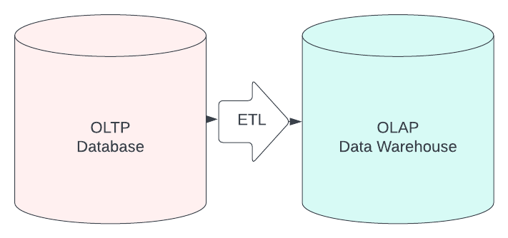 To use a data warehouse, our startup will have to move data currently sitting in our OLTP systems to our OLAP data warehouse using tools and code: