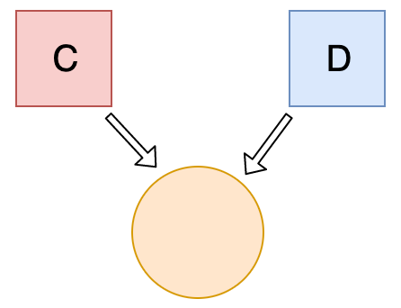First, variable `c` holds a value to an object. Later, we assign `d` with the same reference that `c` has to the object.