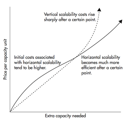 The best thing about horizontal scaling is that you have no cap on how much you can scale whenever performance degrades you simply add another machine, up to infinity potentially.