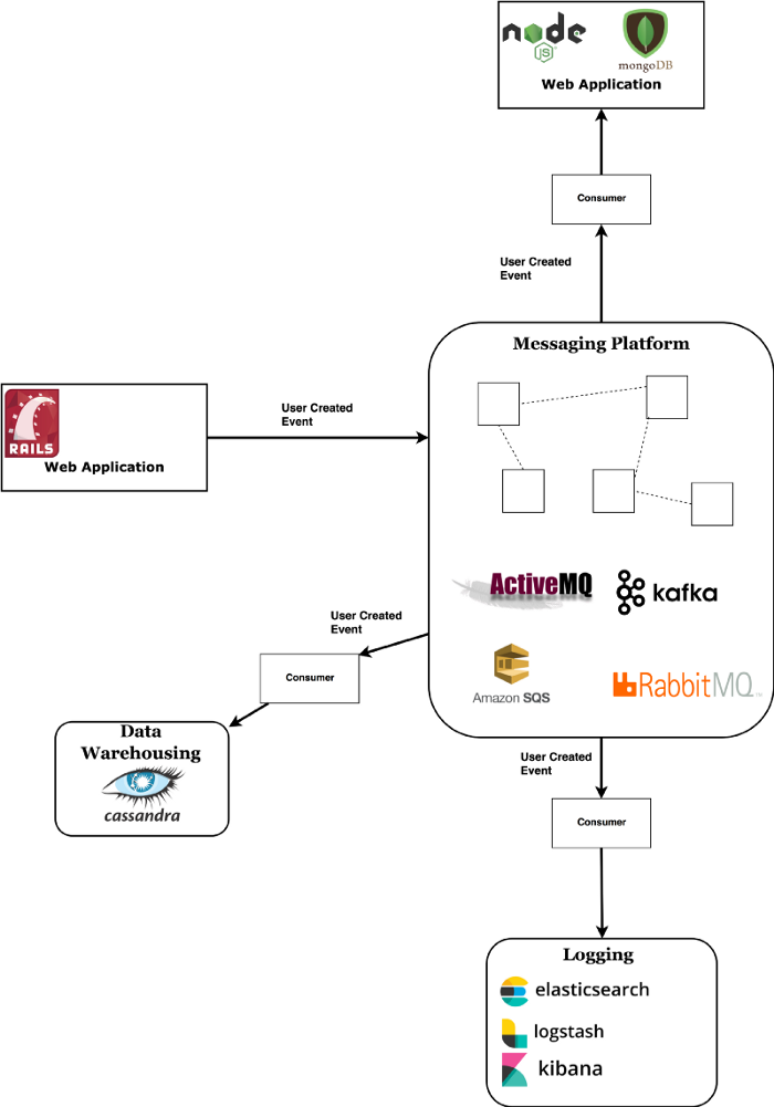 If you need to save a certain event to a few places (e.g user creation to database, warehouse, email sending service and whatever else you can come up with) a messaging platform is the cleanest way to spread that message.