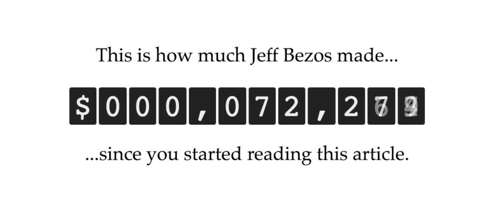 I developed a web page that calculates how much money Jeff Bezos makes while you read it: Bezos' Calculator.