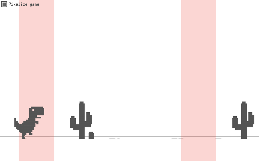 Initially, the game had a different dinosaur, it was bigger and more rounded, but I didn't fully like how it looked, so I changed it a little to make it look more like the original version from Chrome.