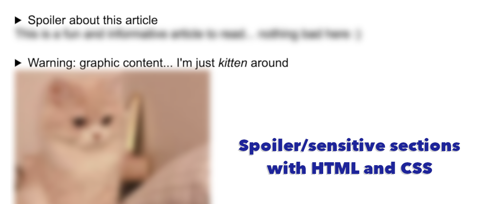 This is a way to create a spoiler section that would be great for hiding sensitive content or spoilers. And it only uses standard HTML and 8 lines of CSS! The browser handles all the logic for showing/hiding without needing any JavaScript.