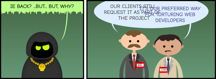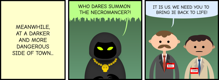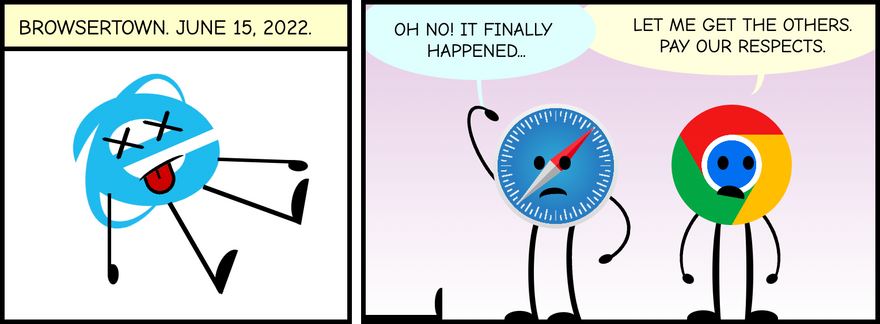 Today is June 15th, and what more important web event than the end-of-life of Internet Explorer. To commemorate that moment, I created a special webcomic, considerably longer than the ones Iâm use to do. It is divided in three parts: