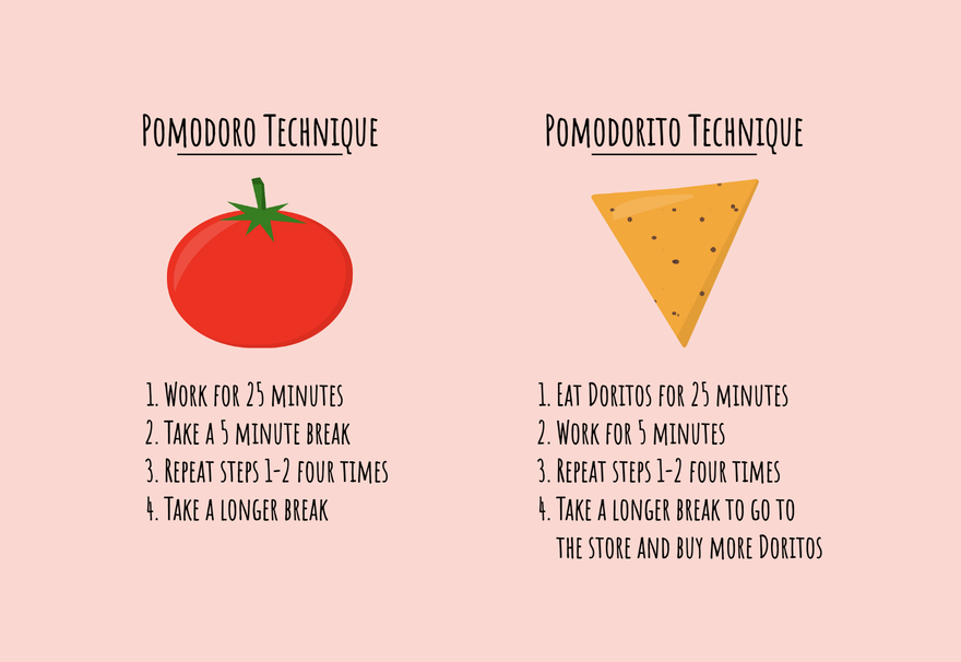 Alternatively to the Pomodoro Technique, I introduce you to the tongue-in-cheek Pomodorito Technique (not Lay's affiliated):