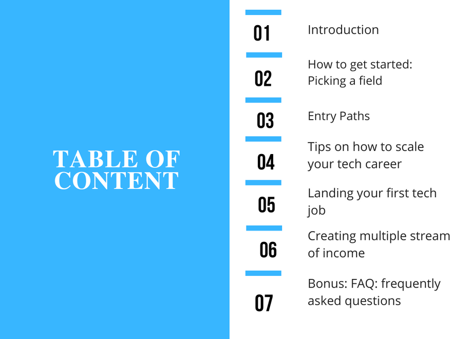 I published this ebook aimed to help people transition into tech. The tech industry is booming, and the world is going digital. Starting a career in tech is more feasible than ever. It doesn't matter where you are coming, your previous background, or your age.