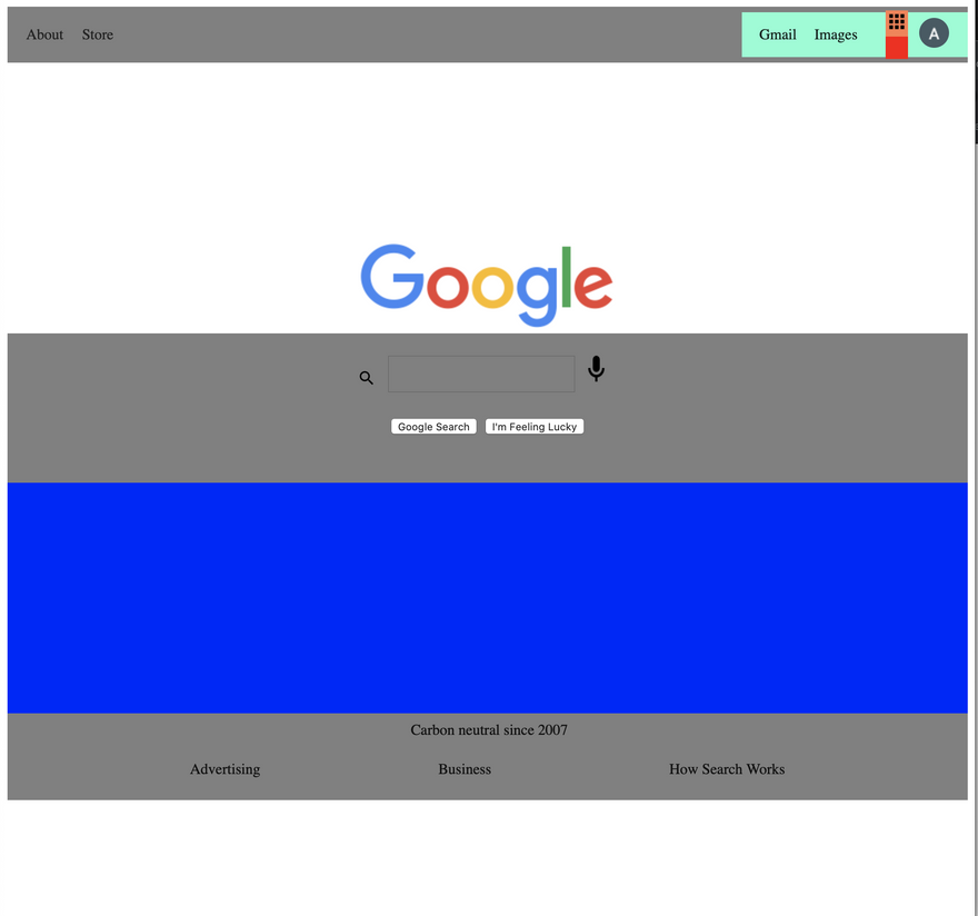 TLDR: I set out to recreate the Google homepage, failed, and then decided to spend more time learning CSS basics. Best decision ever.
