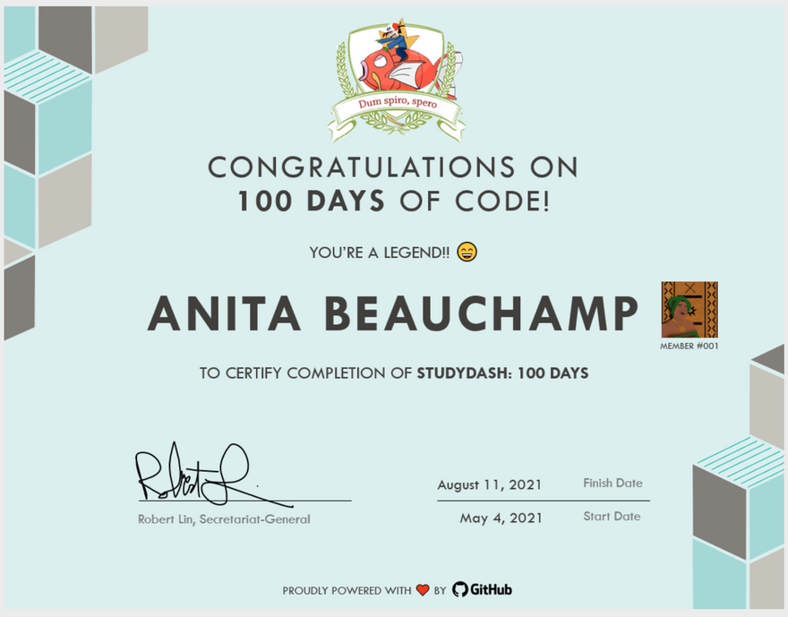Congratulation for finishing #100DaysofCode, Anita!!!! 🎉🎉🎉
