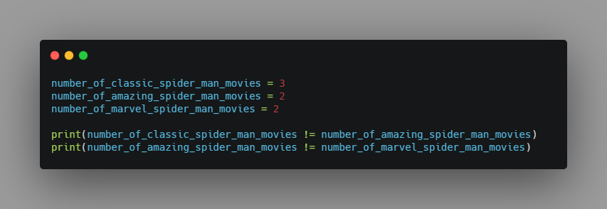 Now, let's start with equality checks and I hope you like spider-man movies.