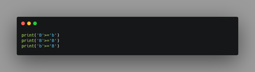 For the rest of the operators let us compare the letters from the Alphabet.