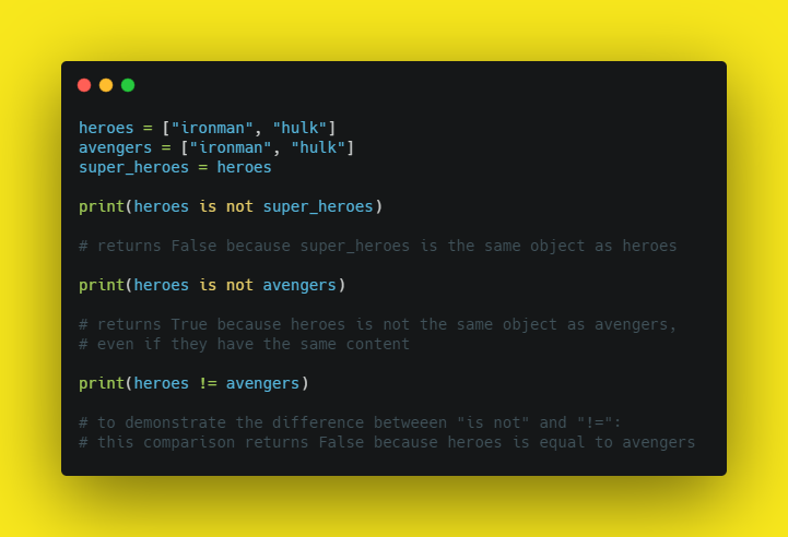 Identity operators are used to checking whether the objects are the same or not.