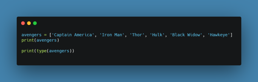 ('Captain America', 'Iron Man', 'Thor', 'Hulk', 'Black Widow', 'Hawkeye')