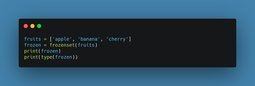 - The frozenset() function accepts an iterable and returns an unchangeable frozenset object (which is like a set object, only unchangeable)