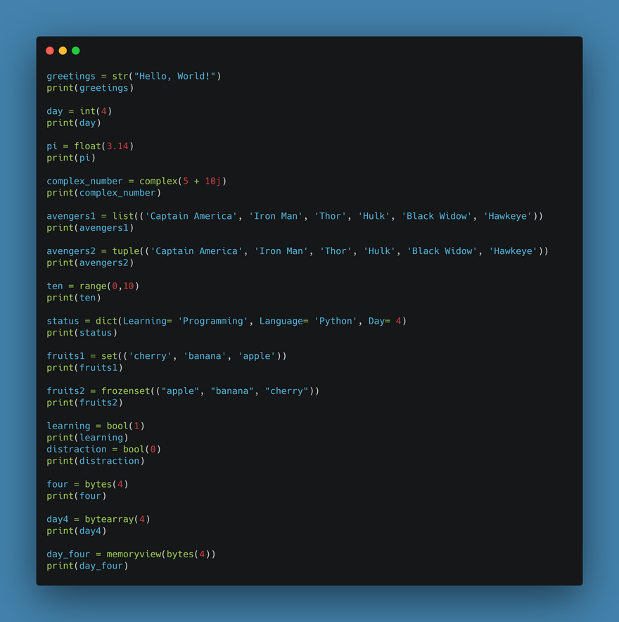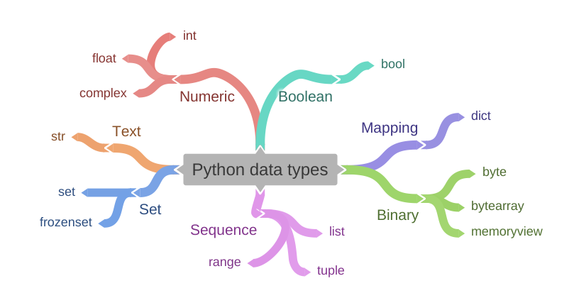 A data type is like a specification of what kind of data we would like to store in memory and python has some built-in data types in these categories: