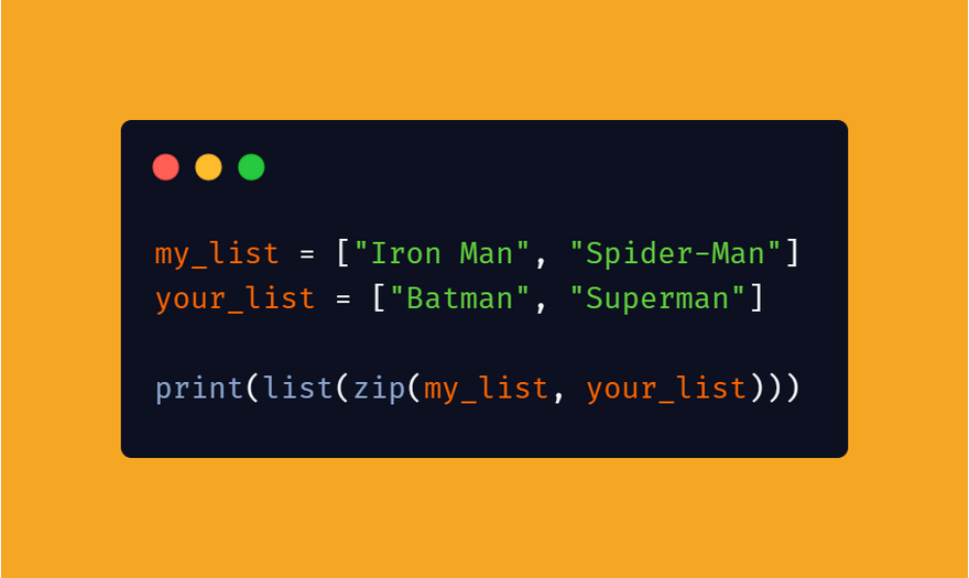 - zip() function binds together the corresponding index items in a tuple and inserts into a list function (as I specified as the list() function).