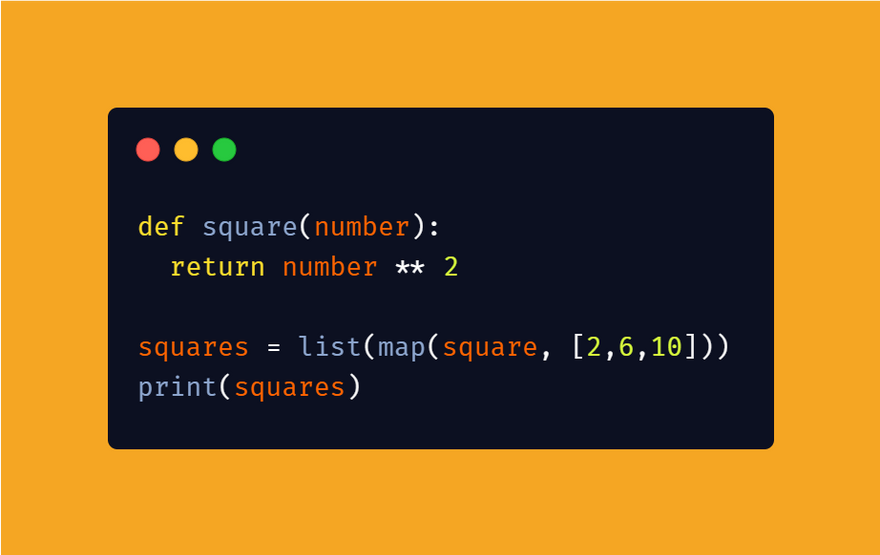 - Consider the above example of square function, we can make use of map() function to quickly apply the function to a given iterable like a list of numbers: