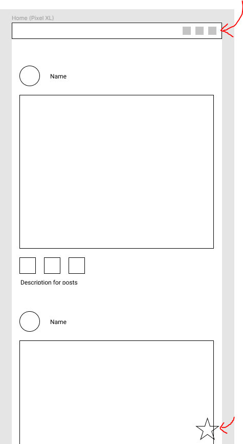 I created a new Project for Pixel XL and I added some rectangular, a circle and some text fields. I removed the color and I added a black stroke for the shapes. In most cases, the alignment is on the left.