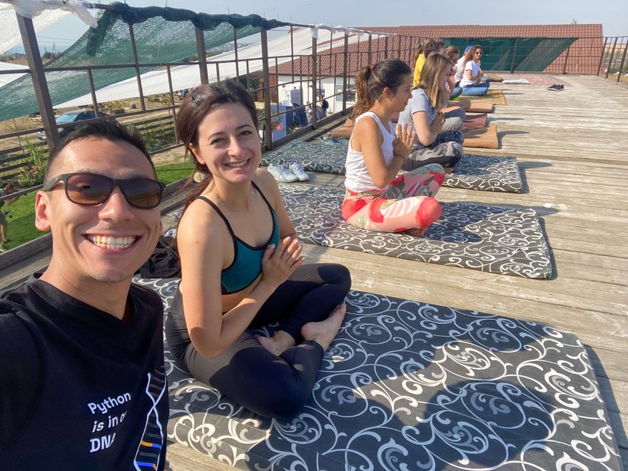 This day started differently... It started with yoga! The speakers and the attendees got together on the building's terrace where we met the yoga instructor and had a lovely short session with her!
