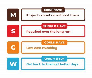 This mechanism was implemented via MoSCoW â a simple yet powerful solution to set priorities both with and without timeboxes. However, it shows better efficiency if you have a certain deadline for a task, feature, subfeature, functionality, etc. The framework is applicable to all levels of project prioritization from top to bottom, as well as to all functions and focus areas.