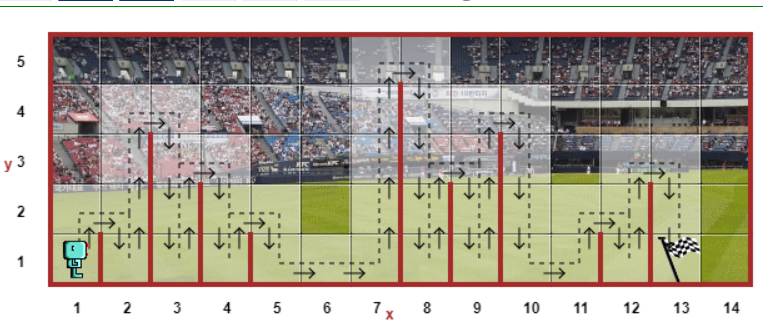 Maze Here the position of the walls and flag is fixed but not the position of Reeborg. The image for this is as follows