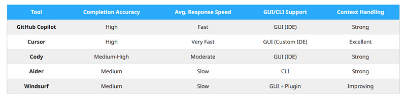 The landscape of AI-powered coding tools is evolving fast. While GitHub Copilot still leads in versatility and performance, Cursor and Windsurf are rapidly gaining ground with tailor-made features for modern developers. Cody’s strength lies in navigation and code understanding, while Aider is built for automation-savvy engineers comfortable with the command line.