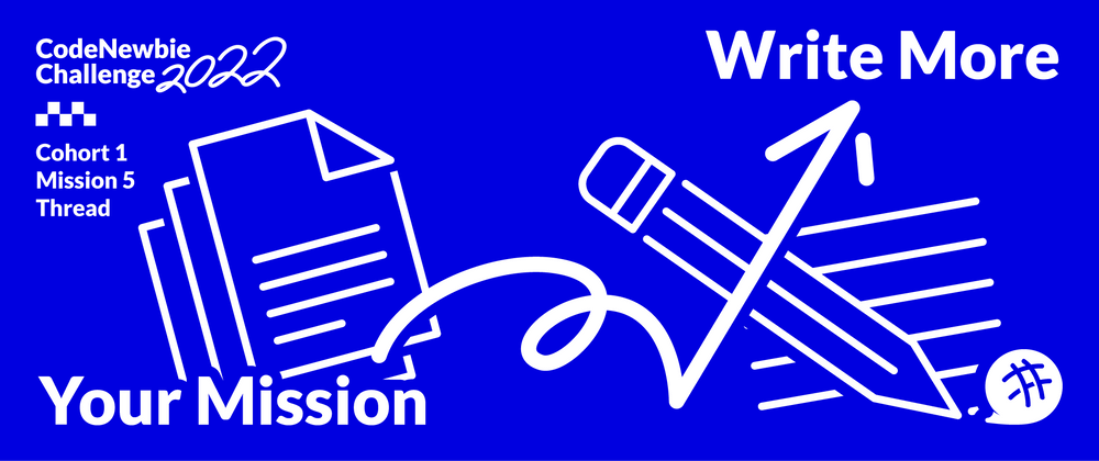 Congrats on challenging yourself to Write More! If you have any questions about the challenge overall, head to the Write More Help Thread. For any technical questions throughout the challenge (or in general) write a #help post on CodeNewbie Community or DEV and share with the community!