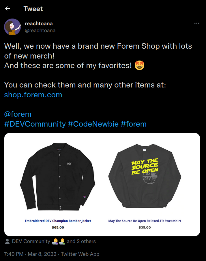 Today, the Forem team is excited to share that they've redesigned the beloved DEV Shop to be more representative of our community's structure and relationship with CodeNewbie Community and Forem.
