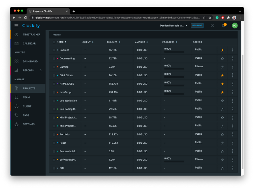 - 👉 Second, define this activity as a project in the time tracking app. By doing so, I can get detailed information on the app regarding how much time I invested over the days.