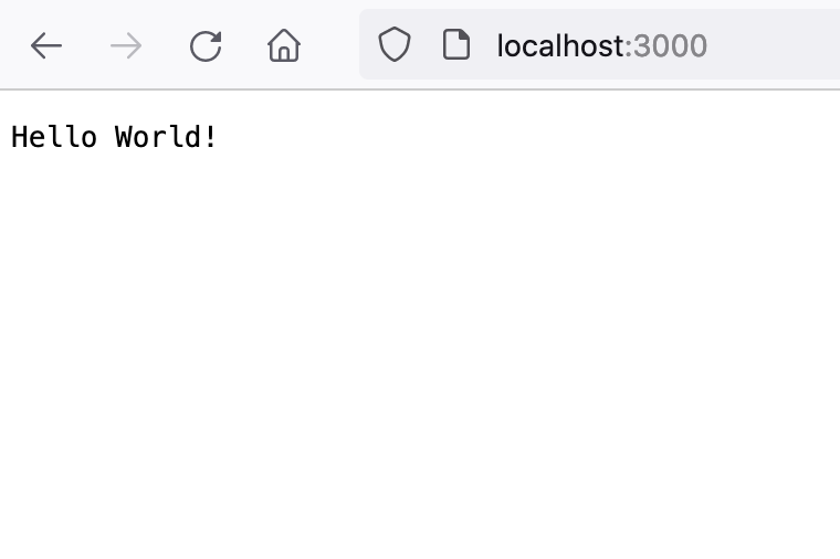 We can now execute this file from the terminal to see if it works on the server: node app.js. We should get http://localhost:3000. Once we open it, we should a Hello World! message: