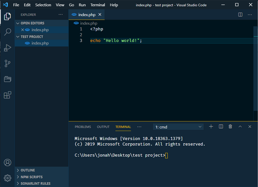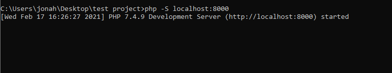 Note: If you get an error that 'php' is not recognized, you likely will need to add it to your path manually. To do that, locate