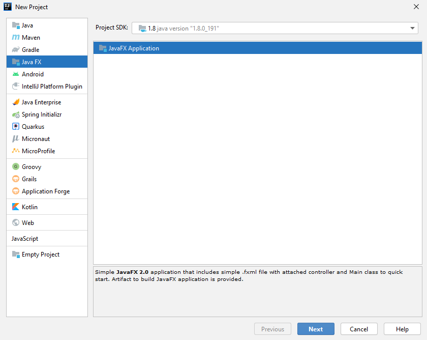 Open your IDE and create a new project, you will be prompted to select which type of project do you want, select JavaFX.