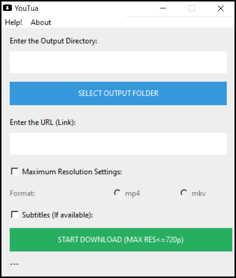 - For Downloading video with MAXIMUM RESOLUTION (=>720p) available according the video link, check the MAX RES Settings and choose the output format (.mp4 or .mkv) as per preferences.