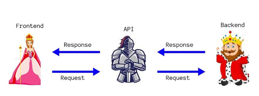 For example, when you signup on a website, the frontend sends a request to the server via API which contains your user data, and then the server identifies and executes that request, in this case adding you in the database. After performing the function, the server sends a response in return for the requests, which contains information like if the function was executed properly, the request was correct, etc.