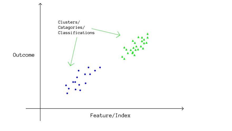 In Classification algorithms, the model tries to divide each of the features in the data into different clusters or sections and tries to find a pattern in the clusters with the outcome. Like, in our email spam detection, the number of links can be divided in a way like, if the number of links is greater than 6 then most of the time, the email was spam, while if the number of links was less than 4, then most of the times the email was not spammed ( or ham ). So we divided the “number of links” feature into three clusters (categories ), less than 4, greater than 6, and the remainder ( {4, 5, 6} links ), and determined a correlation with our classification.