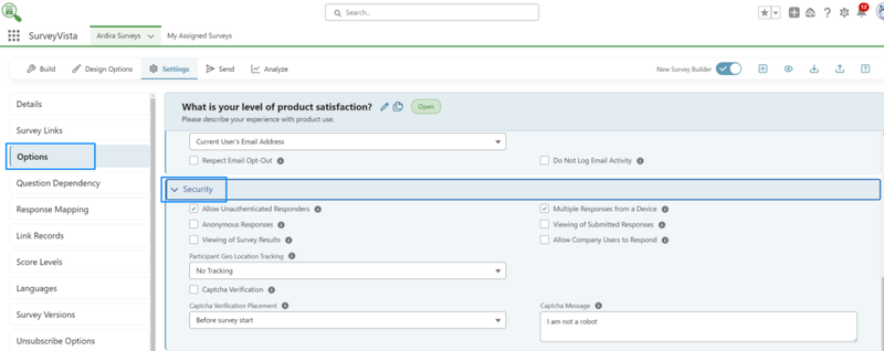 Since Survey Vista is a native Salesforce app, it inherits all the security features of Salesforce. This includes role-based access control, encryption, and compliance with industry standards like GDPR and HIPAA (if applicable). All feedback data is stored securely within Salesforce, ensuring that sensitive information is protected. And thatâs not all, Survey Vista enhances security options for gathering survey results, such as Captcha and multiple responses from a device.
