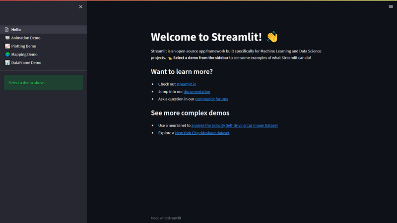 $ streamlit hello