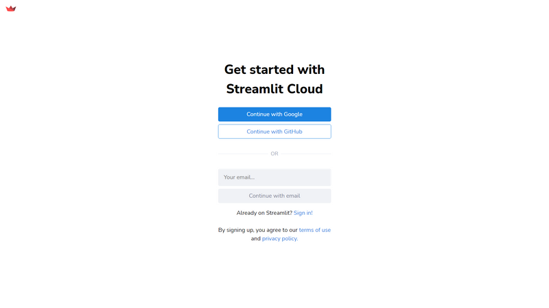 - Sign up for Streamlit Cloud [with GitHub recommended]