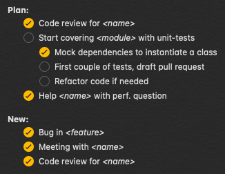 Daily standups or any other form of sync with colleagues is the perfect time to diagnose this problem: