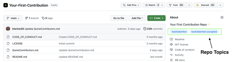 hacktoberfesttopic opt-in. If you make a PR to a non-Hacktoberfest repo, you can kindly ask the maintainer to add thehacktoberfest-acceptedlabel.