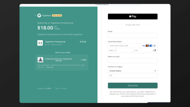 - with Stripe Checkout Integrating it into your product is easier and quicker than developing your own. Stripe Checkout is a complex payment processing system that also works well for subscriptions. Yet, it definitely can cover all the requirements your product might have.