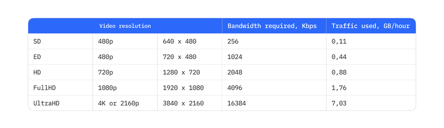 Select a resolution. The right column shows how many gigabytes will be consumed per hour when streaming video in the selected resolution. The numbers are obtained with the help of a calculator. If the table does not have the necessary values, take the data from there.