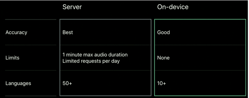 Apple claims the on-device results are worse. But there are limits for using it online.